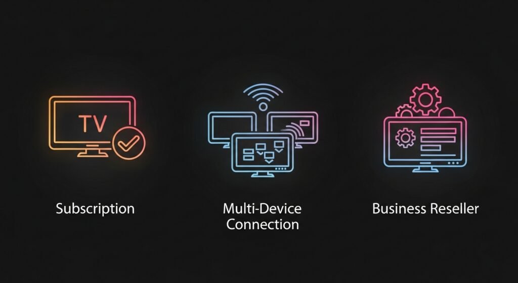Enjoy premium streaming with flexible subscriptions, stream on multiple devices, and even start your own business with our powerful reseller panel — all under one trusted platform.